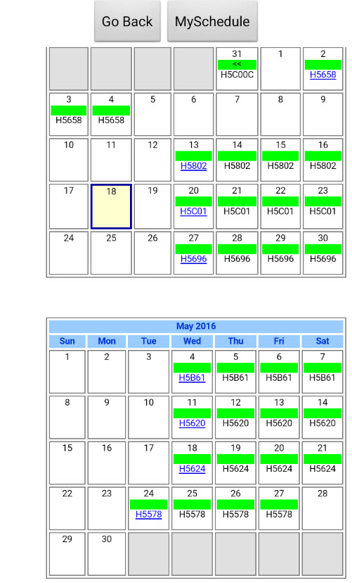 View My Calendar screen - For offline viewing - Selectable from My Schedule Screen