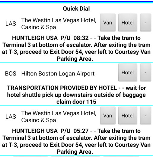 You can now Press a Flight Number for Flight Status and also dial using the buttons to the right for Hotels, Ops, and Van Transportation.