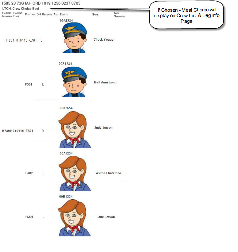 Leg info populates to Leg buttons - click on a Leg button to view crew list (Photos are loaded from the Load Trip screen)